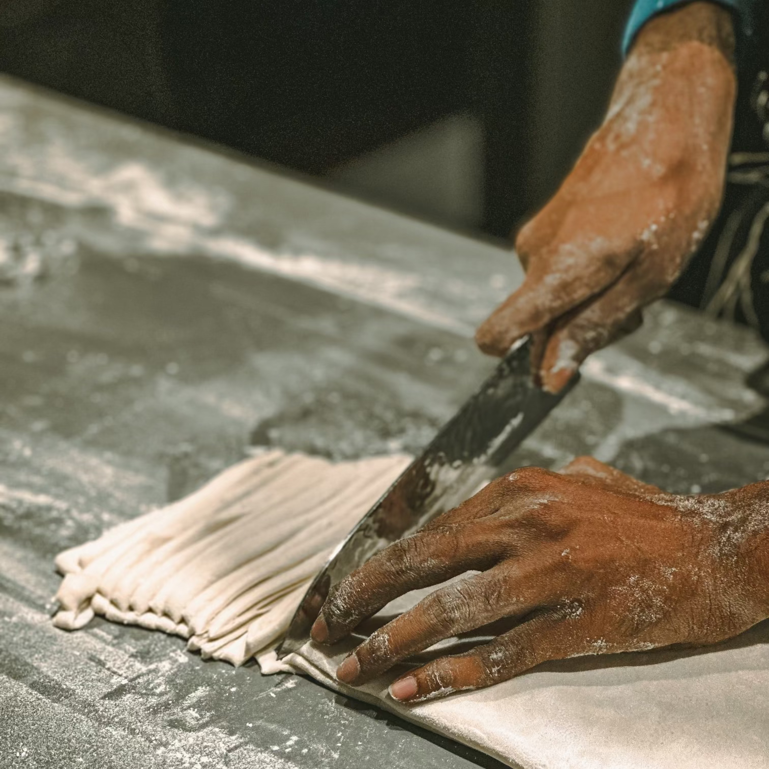 2) Hands-On Pasta Making - Participants will roll, shape, and cut their own fresh pasta guided by Chef Goku — exploring techniques that range from hand-rolling to machine-extruded textures. The tactile art of pasta-making meets the science of hydration, gluten, and time.